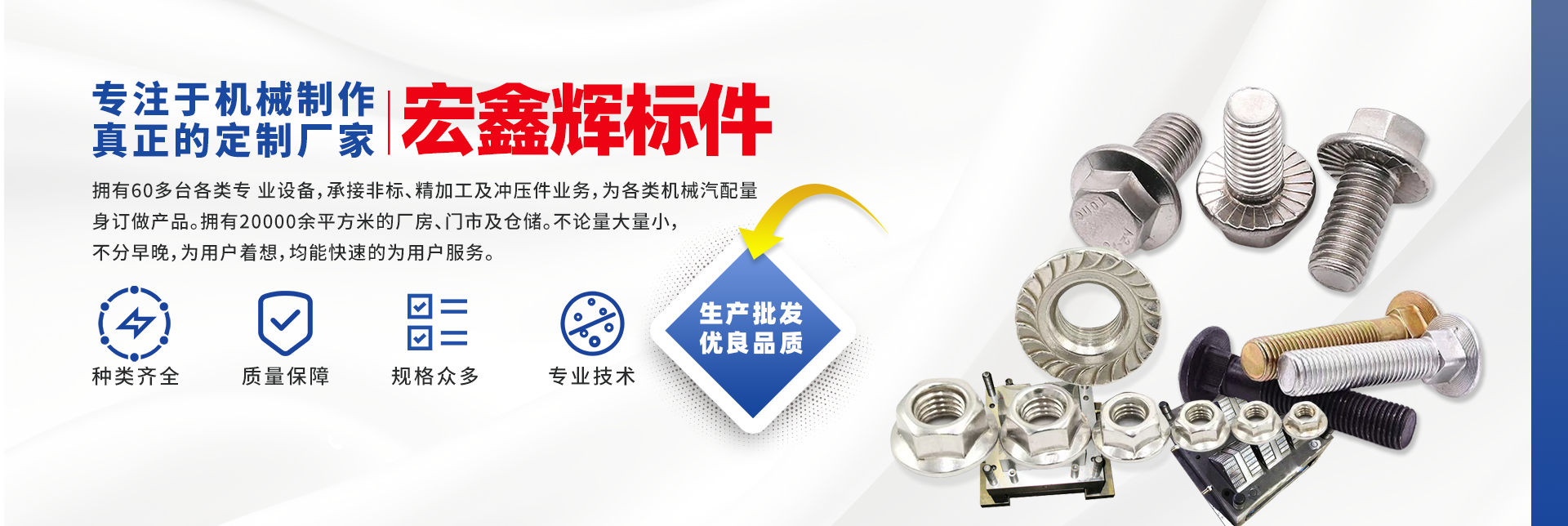 四川宏鑫輝標(biāo)準(zhǔn)件制造有限公司下設(shè):南充市宏輝機(jī)械制造有限公司,南充市聚宏機(jī)電設(shè)備有限公司,公司始建于1994年。為了拓展市場,降低成本,本公司于2007年、2020年分別在南充、 成都、重慶創(chuàng)建了生產(chǎn)基地。擁有60多臺(tái)各類專 業(yè)設(shè)備,承接非標(biāo)、精加工及沖壓件業(yè)務(wù),為各 類機(jī)械汽配量身訂做產(chǎn)品。擁有20000余平方米的廠房、門市及倉儲(chǔ)。公司以誠信為本,竭誠為廣大客戶提供服務(wù)。不論量大量小,不分早晚,為用戶著想,均能快速的為用戶服務(wù)。